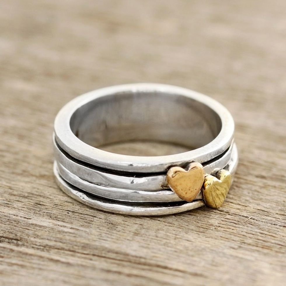 Heart Motif Sterling Silver and Brass Spinner Ring 'Traveling Hearts' Item ID: 2669925450