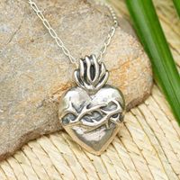 Heart of Jesus Sterling Silver Pendant Necklace from Mexico 'Blessed Heart' Item ID: 2671808485