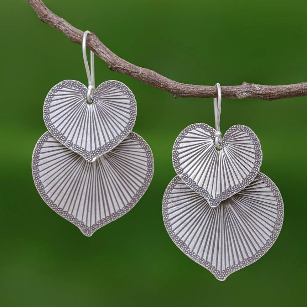 Heart Shaped 950 Silver Earrings 'Lotus Romance' Item ID: 2671800252