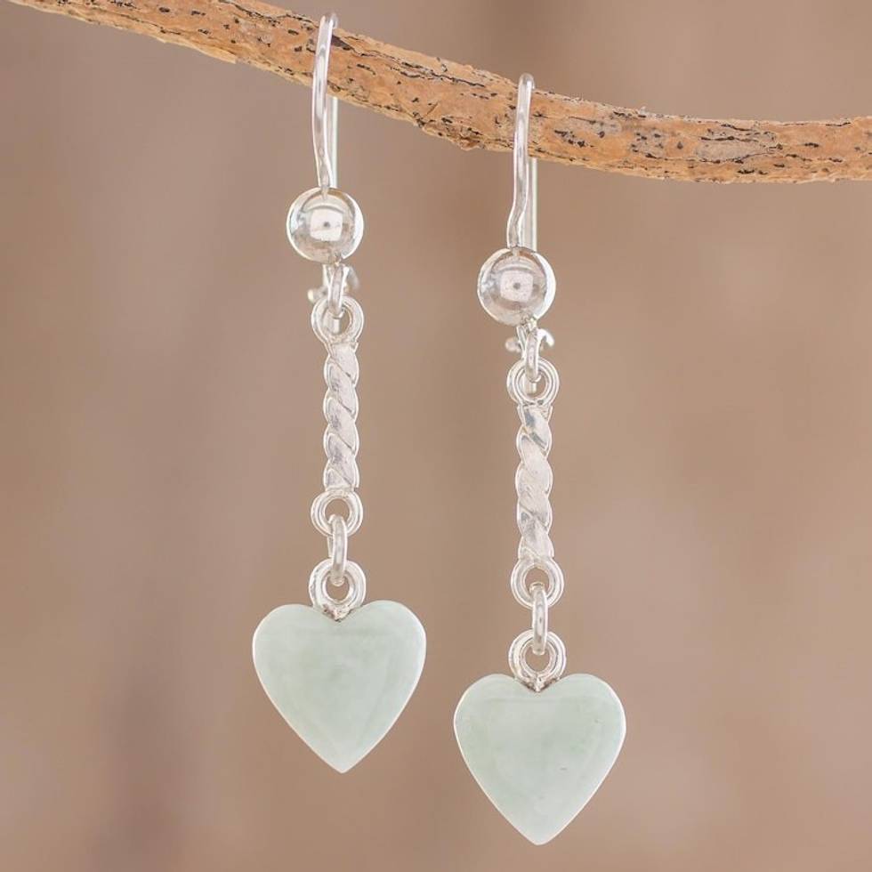 Heart-Shaped Apple Green Earrings from Guatemala 'Apple Green Spirals of Love' Item ID: 2671777559