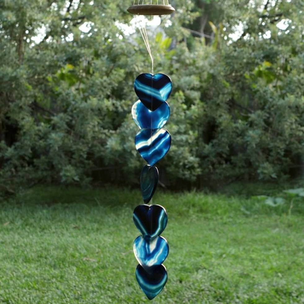 Heart-Shaped Blue Agate Mobile 'Indigo Hearts' Item ID: 2669935356