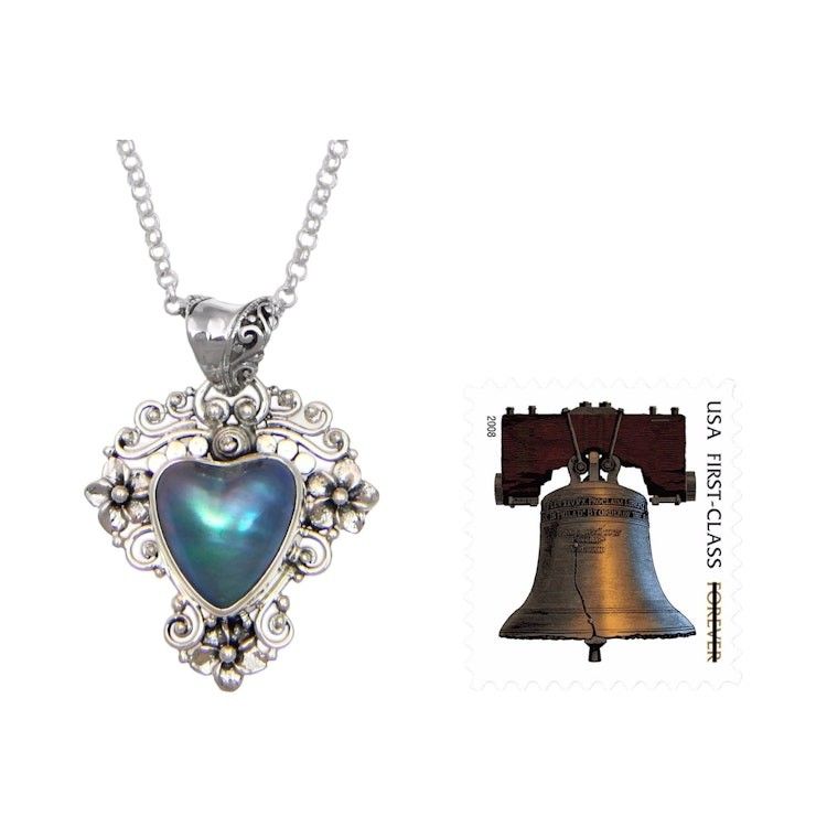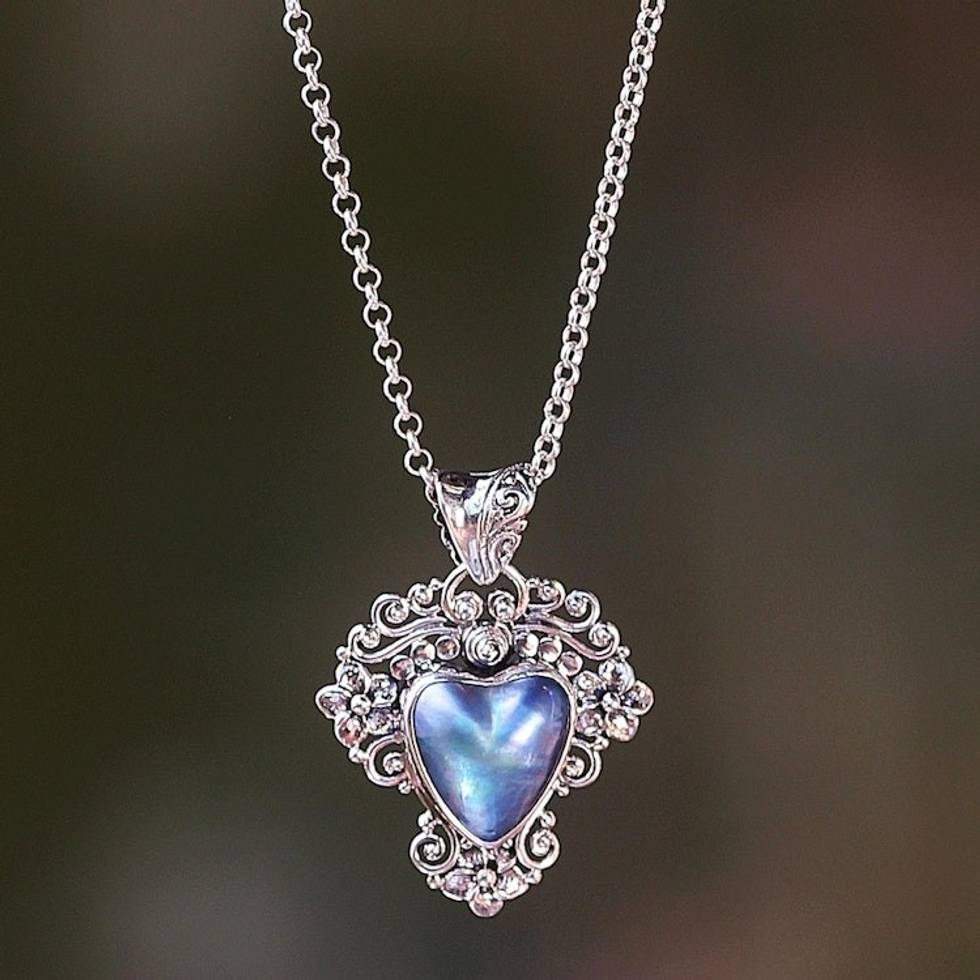 Heart Shaped Blue Cultured Mabe Pearl Pendant Necklace 'Blue Heart in Bloom' Item ID: 2671701770