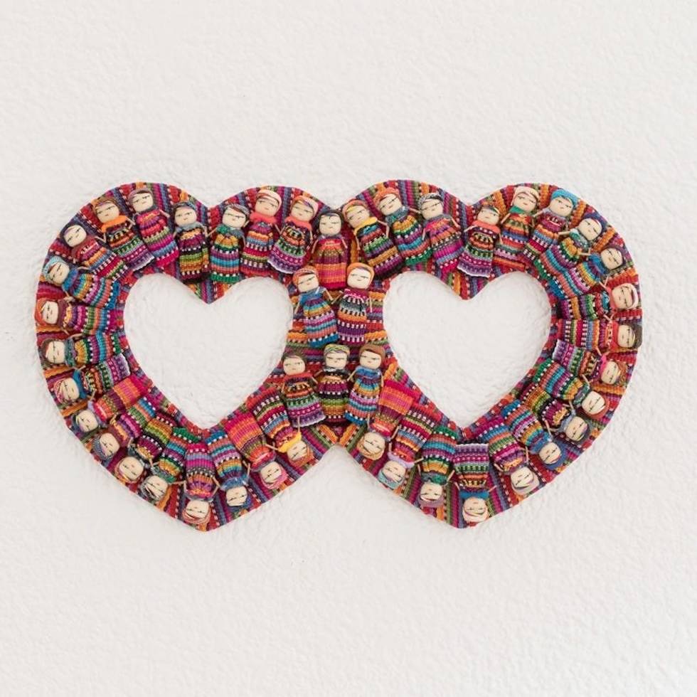 Heart-Shaped Cotton Worry Doll Wall Decor from Guatemala 'Histories of Love' Item ID: 2671777020