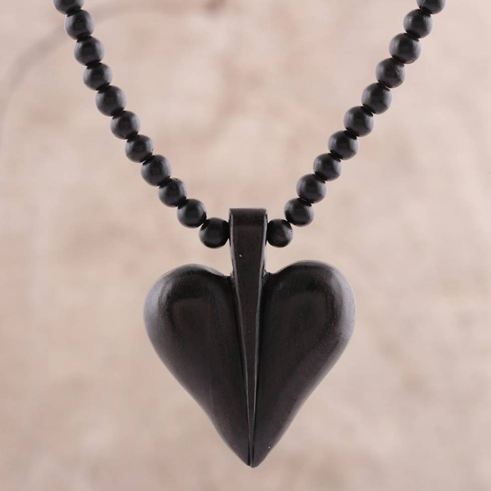 Heart-Shaped Ebony Wood Beaded Pendant Necklace 'Heart Adoration' Item ID: 2671792278