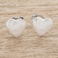 Heart-Shaped Fine Silver Stud Earrings from Guatemala 'Fingerprint of Love' Item ID: 2669933656