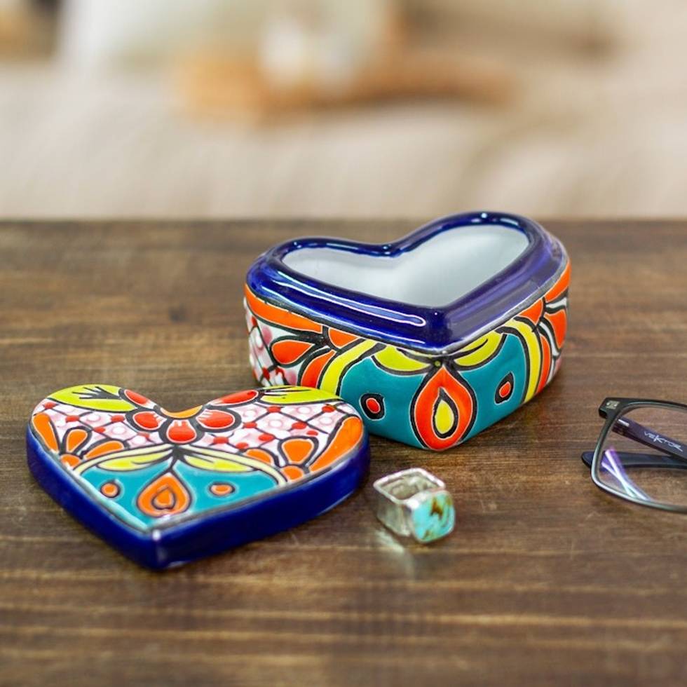 Heart-Shaped Floral Talavera Ceramic Decorative Box 'Classic Romance' Item ID: 2669897859