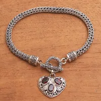 Heart-Shaped Garnet Chain Bracelet from Bali 'Three Times the Love' Item ID: 2669923005