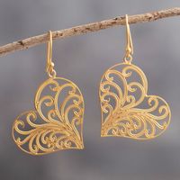 Heart-Shaped Gold-Plated Earrings Handcrafted in Peru 'Flourishing Heart' Item ID: 2671403377