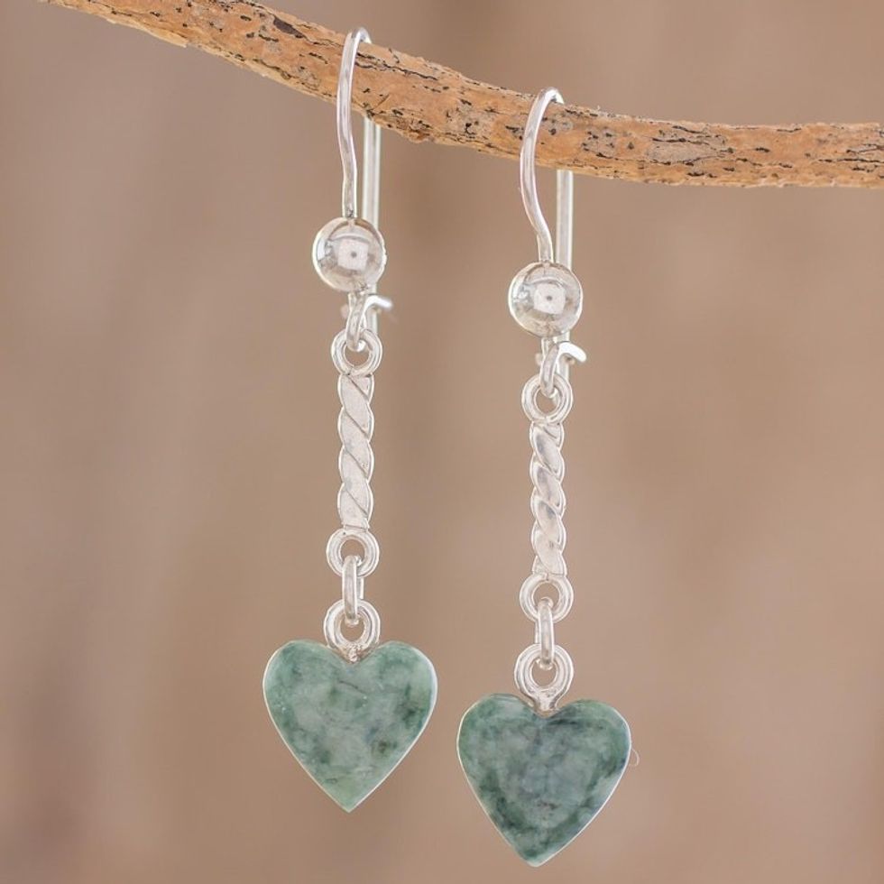 Heart-Shaped Green Jade Dangle Earrings from Guatemala 'Green Spirals of Love' Item ID: 2671778913