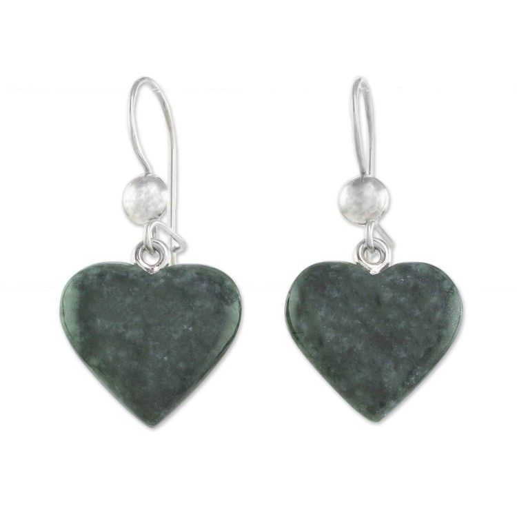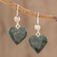 Heart Shaped Jade Dangle Earrings from Central America 'Love Immemorial' Item ID: 2671626194