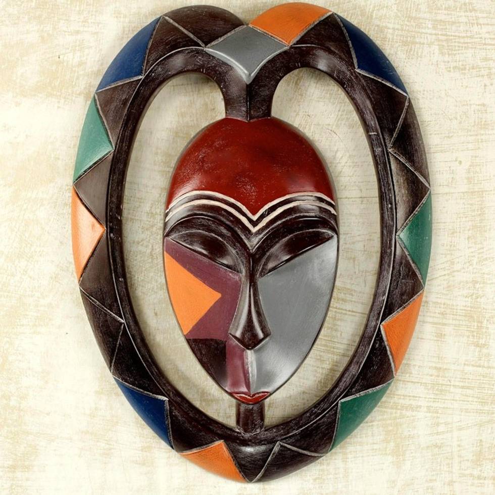 Heart Shaped Kwele Protective Wood Mask Handmade African Art 'Kwele Mask III' Item ID: 2671816150