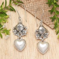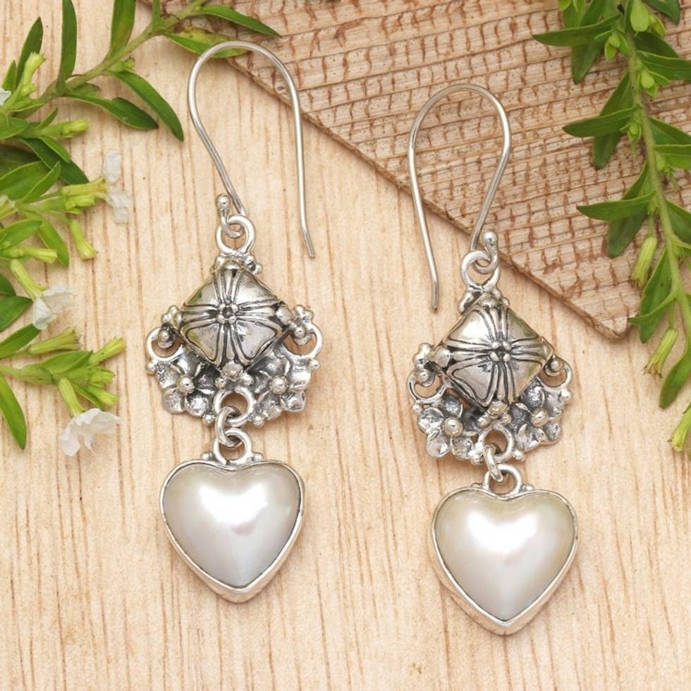 Heart-Shaped Mabe Pearl and Silver Dangle Earrings 'Pure of Heart' Item ID: 2671701426