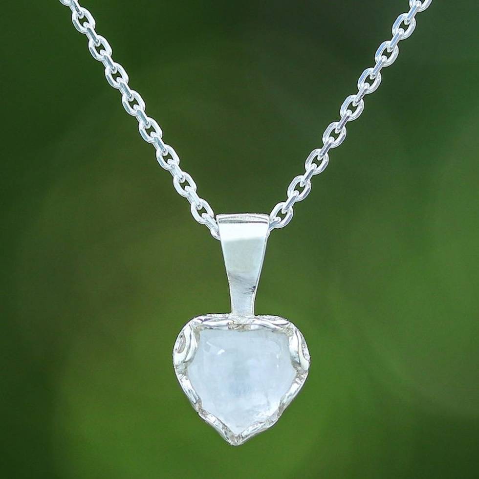 Heart-Shaped Moonstone Sterling Silver Pendant Necklace 'Heart of Belief' Item ID: 2671646509