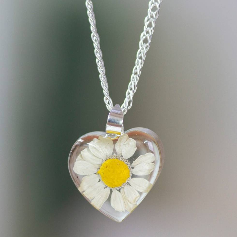 Heart-Shaped Natural Daisy Pendant Necklace from Mexico 'Daisy Heart' Item ID: 2671639357