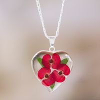 Heart-Shaped Natural Flower Pendant Necklace from Mexico 'Crown Heart' Item ID: 2671807711