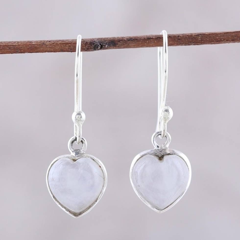Heart Shaped Rainbow Moonstone Dangle Earrings from India 'Sweet Adoration' Item ID: 2671619206