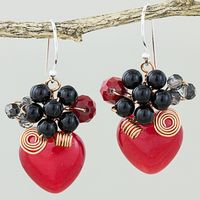 Heart Shaped Red Quartz Onyx and Glass Bead Dangle Earrings 'Love Garden in Red' Item ID: 2669927653