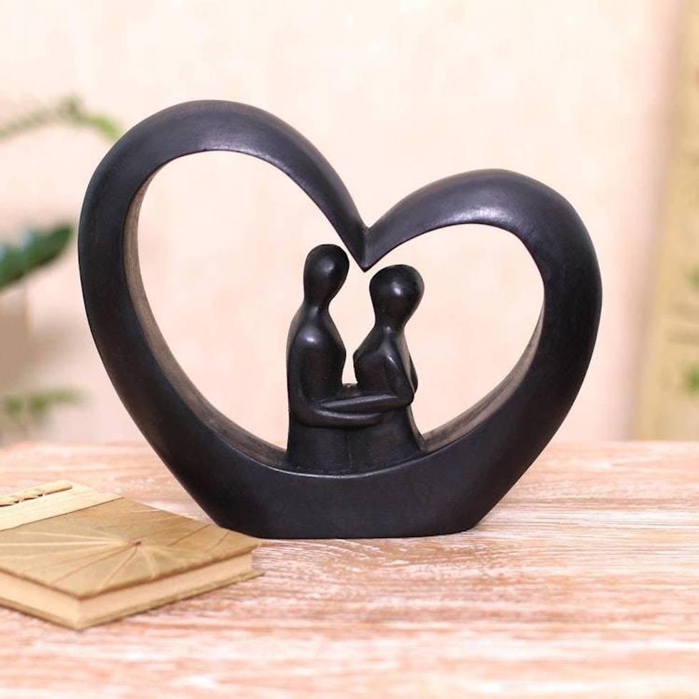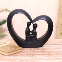 Heart-Shaped Romantic Wood Sculpture in Black from Bali 'Love Within' Item ID: 2676667625
