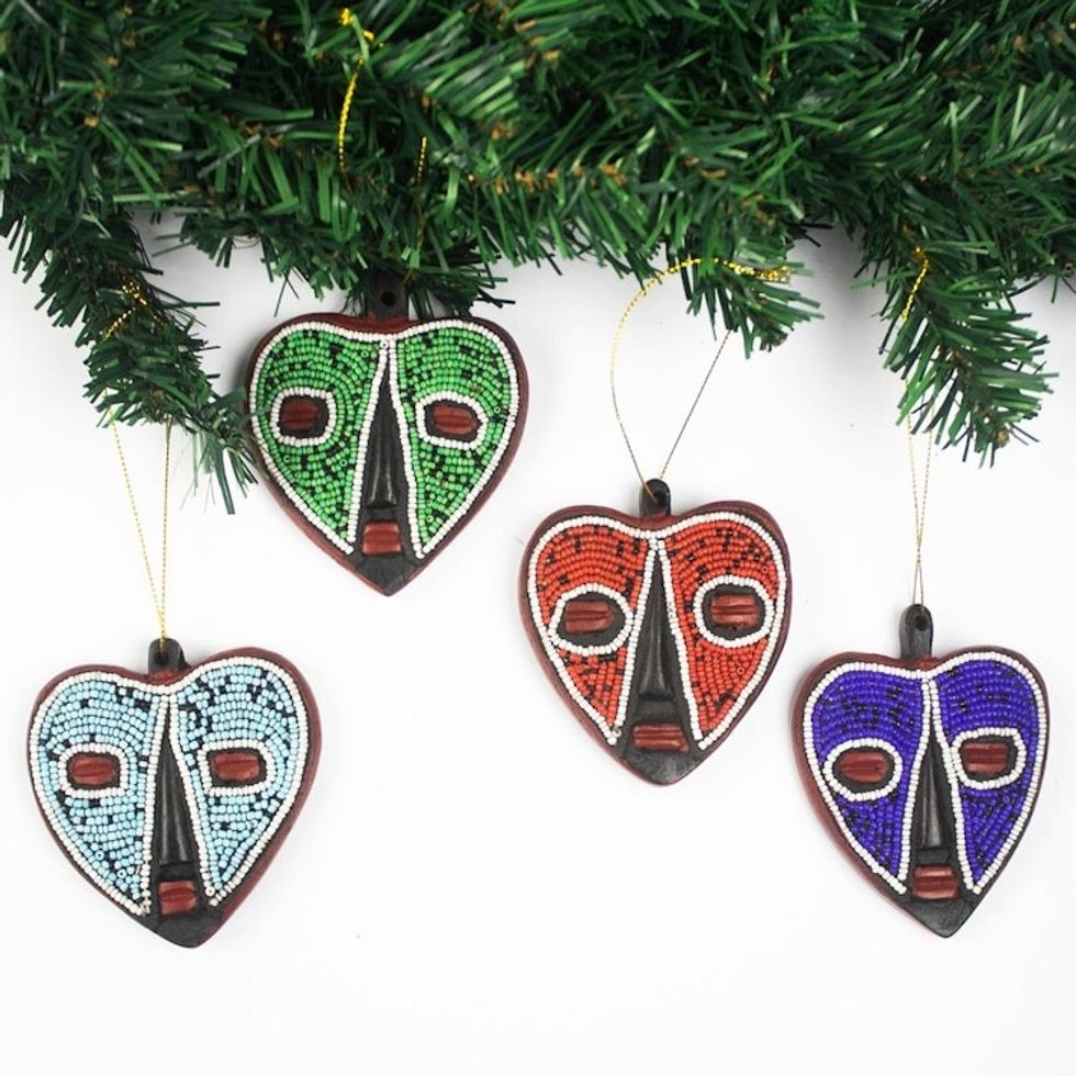 Heart-Shaped Sese Wood Holiday Ornaments Set of 4 'Eternal Love' Item ID: 2671806499