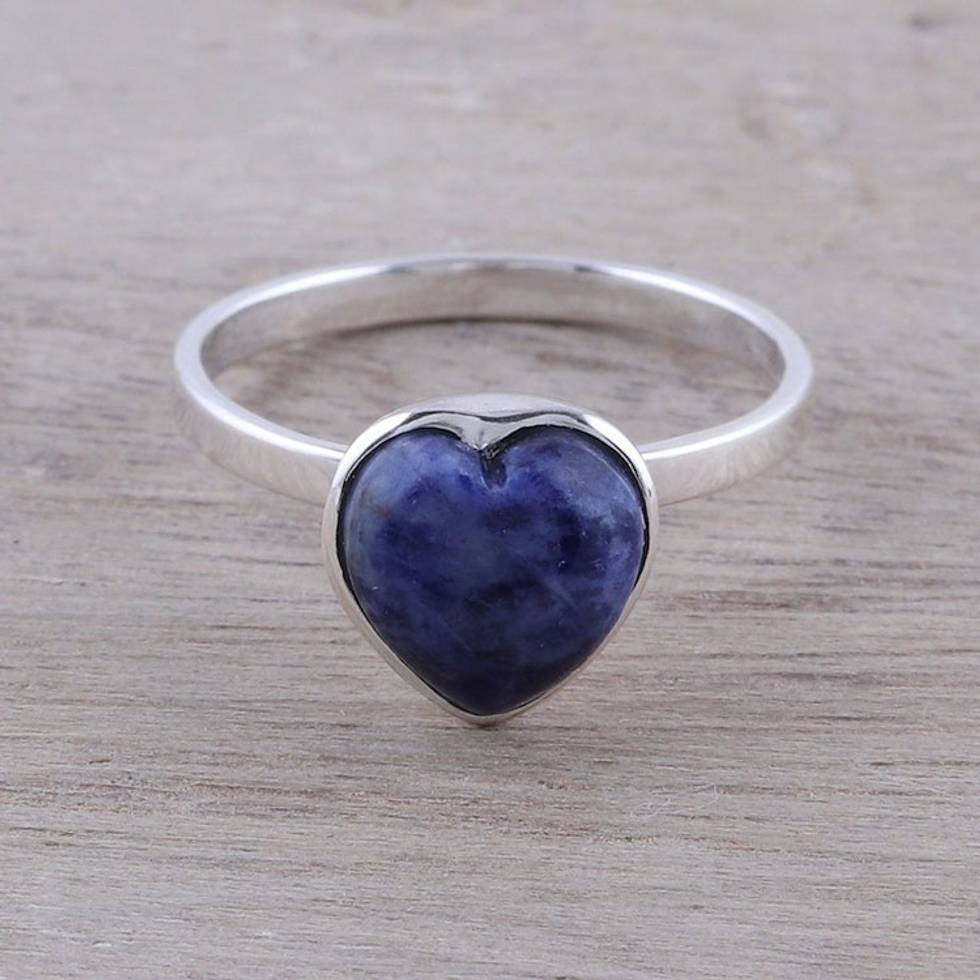 Heart-Shaped Sodalite Cocktail Ring from India 'Gemstone Heart' Item ID: 2671792480