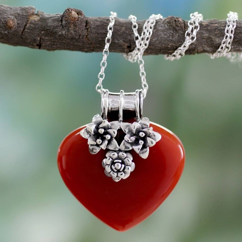 Heart Shaped Sterling Silver and Carnelian Necklace 'Love Declared' Item ID: 2669955534