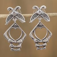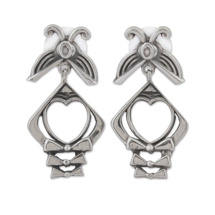 Heart-Shaped Sterling Silver Dangle Earrings from Mexico 'Crossroads of the Heart' Item ID: 2671808950