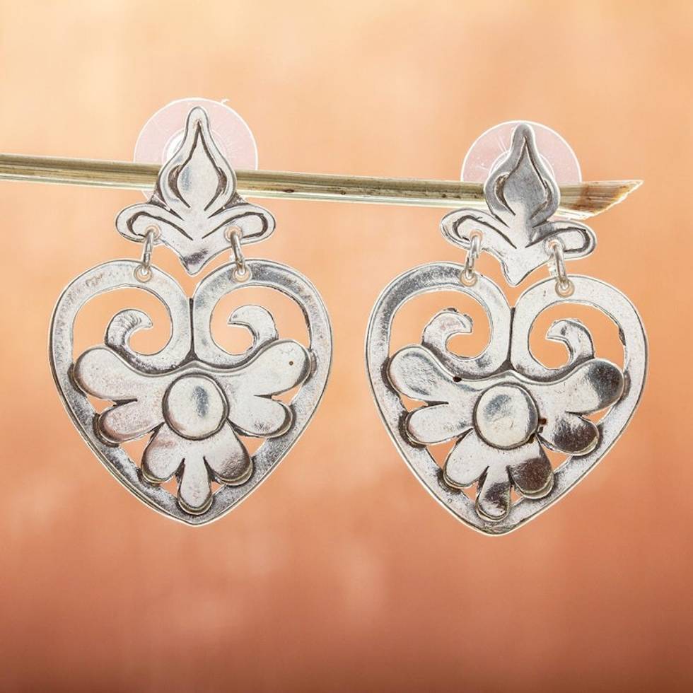 Heart Shaped Sterling Silver Dangle Earrings 'Tarascan Hearts' Item ID: 2671808014