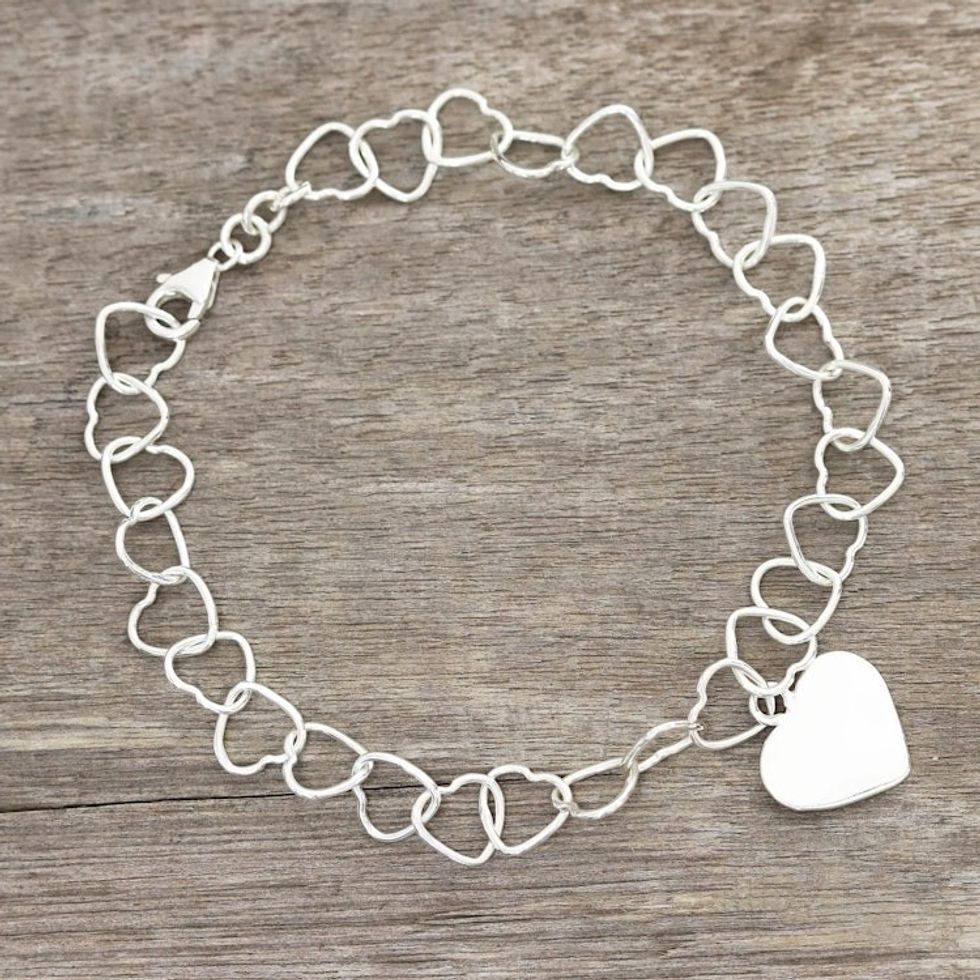Heart-Shaped Sterling Silver Link Bracelet from India 'Many Hearts' Item ID: 2669924350