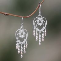 Heart Shaped Sterling Silver Pearl Chandelier Earrings 'Rose Romance' Item ID: 2671483273