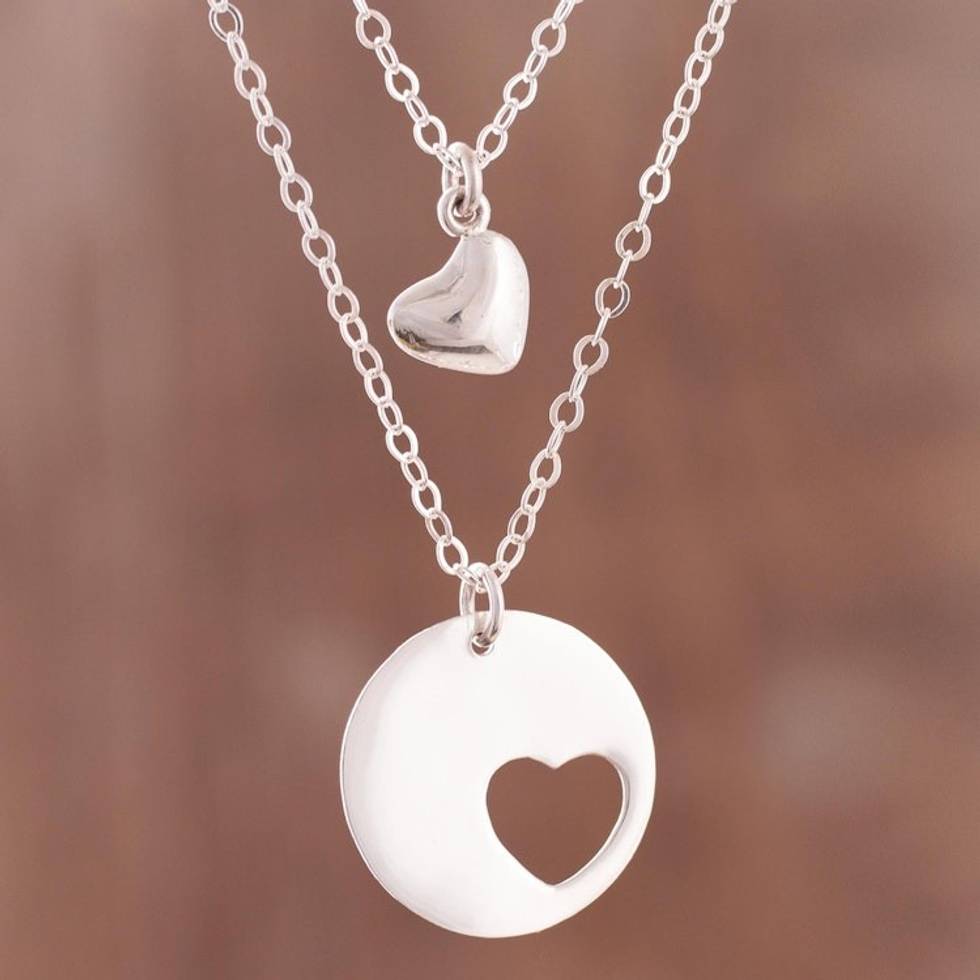 Heart-Shaped Sterling Silver Pendant Necklace from Peru 'Complementary Hearts' Item ID: 2671690062