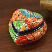 Heart-Shaped Talavera-Style Ceramic Decorative Box 'Floral Heart' Item ID: 2669898103