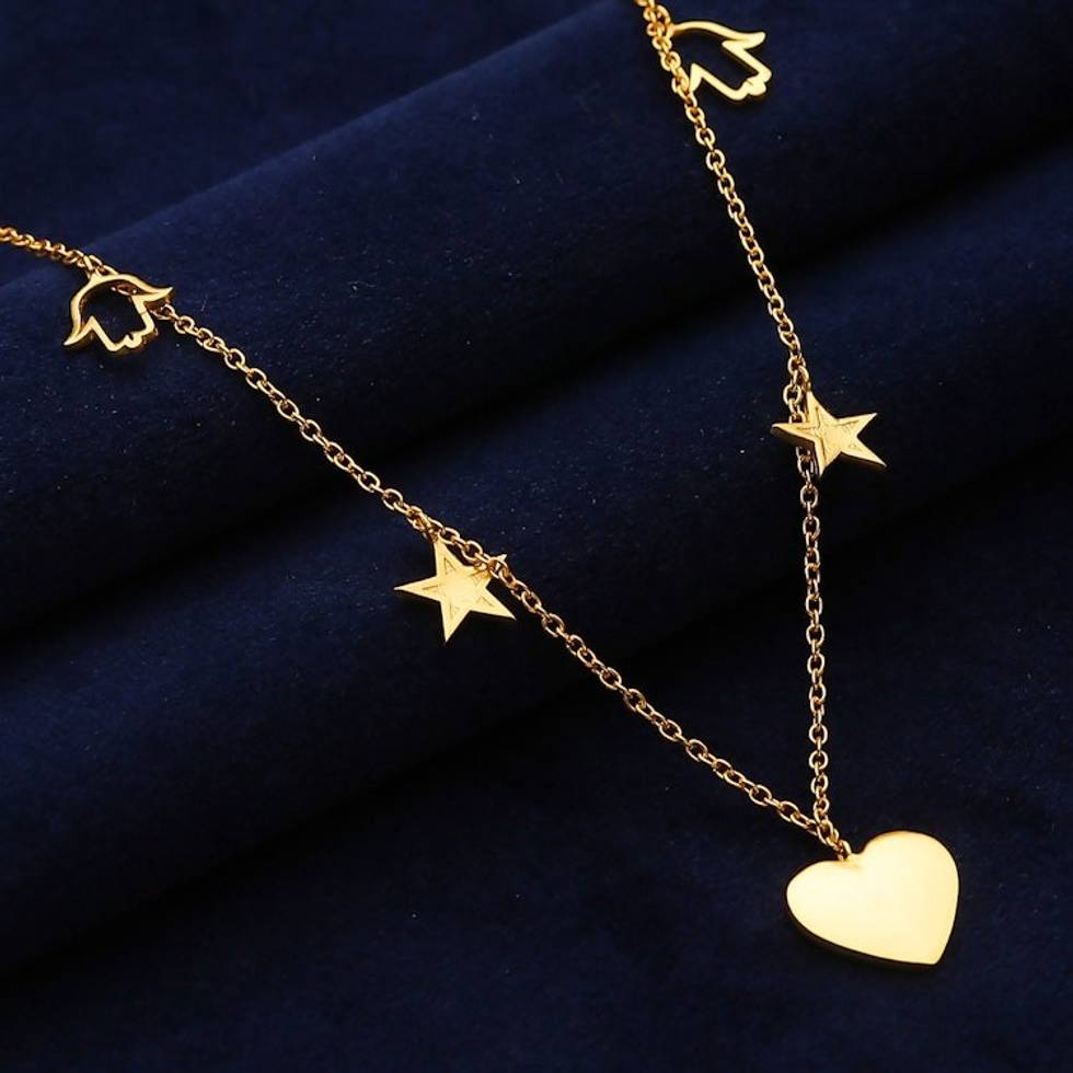 Heart, Star and Hamsa-Themed 22k Gold-Plated Charm Necklace 'Lovely Dreams' Item ID: 2671781574