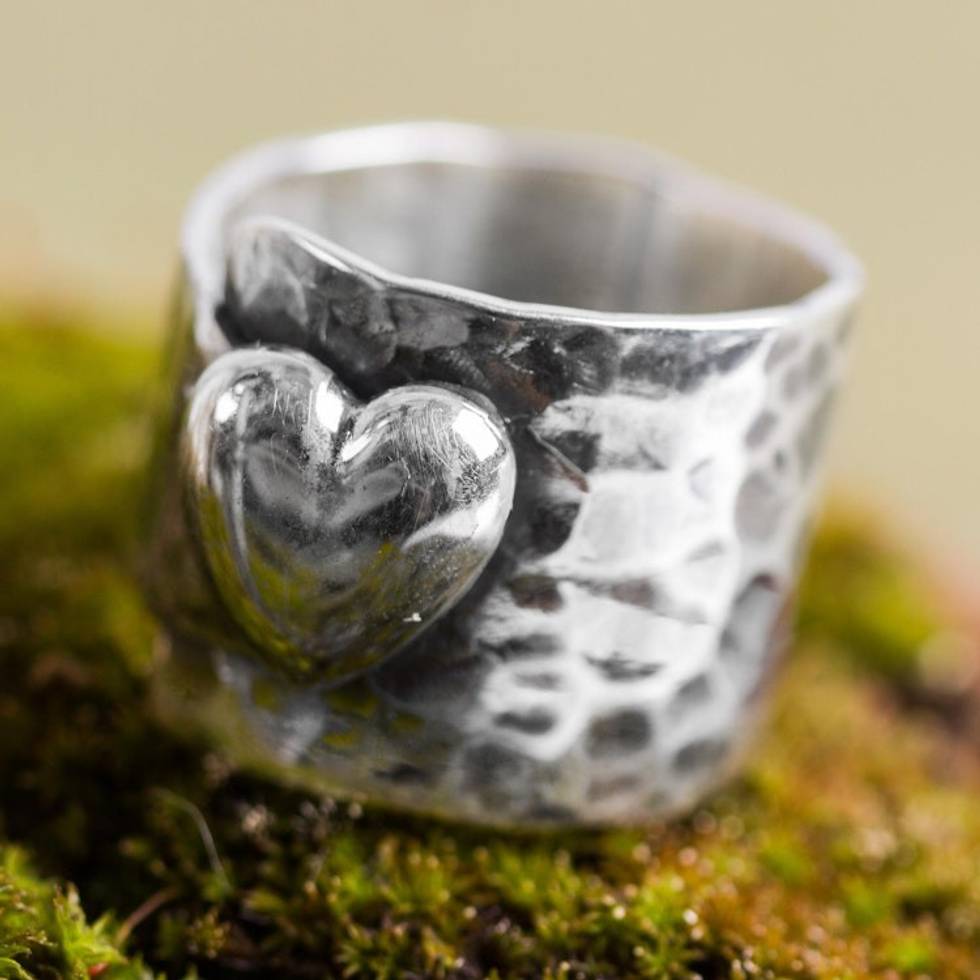 Heart Theme Handcrafted Andean Sterling Silver Ring 'Heartfelt Hug' Item ID: 2669919333