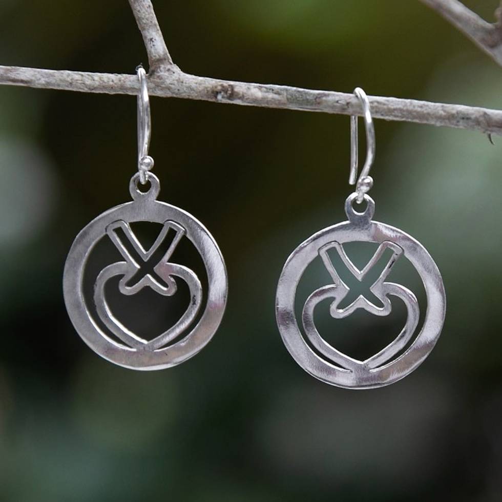 Heart-Themed Modern Round Sterling Silver Dangle Earrings 'Gift for Love' Item ID: 2671764964