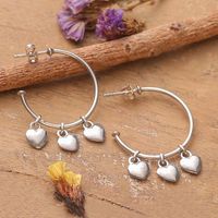 Heart-Themed Polished Sterling Silver Half-Hoop Earrings 'Heartfelt Loops' Item ID: 2676664535