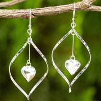 Heart Themed Sterling Silver 925 Dangle Earrings 'Heart Pendulum' Item ID: 2669930322