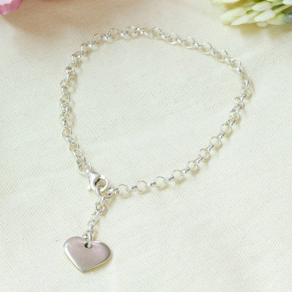 Heart-Themed Taxco Silver Charm Bracelet from Mexico 'Chained Heart' Item ID: 2671798649