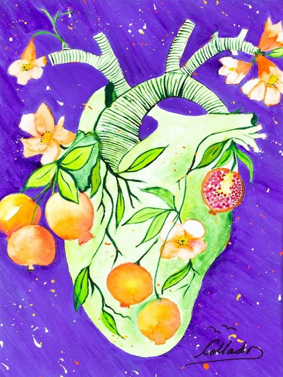 Heart with Pomegranates Watercolor and Acrylic on Paper 'Heart with Pomegranates' Item ID: 2669898928