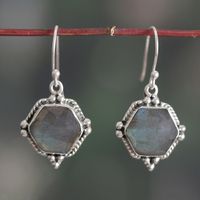 Hexagon-Shaped 6-Carat Natural Labradorite Dangle Earrings 'Sixth Intuition' Item ID: 2671781366
