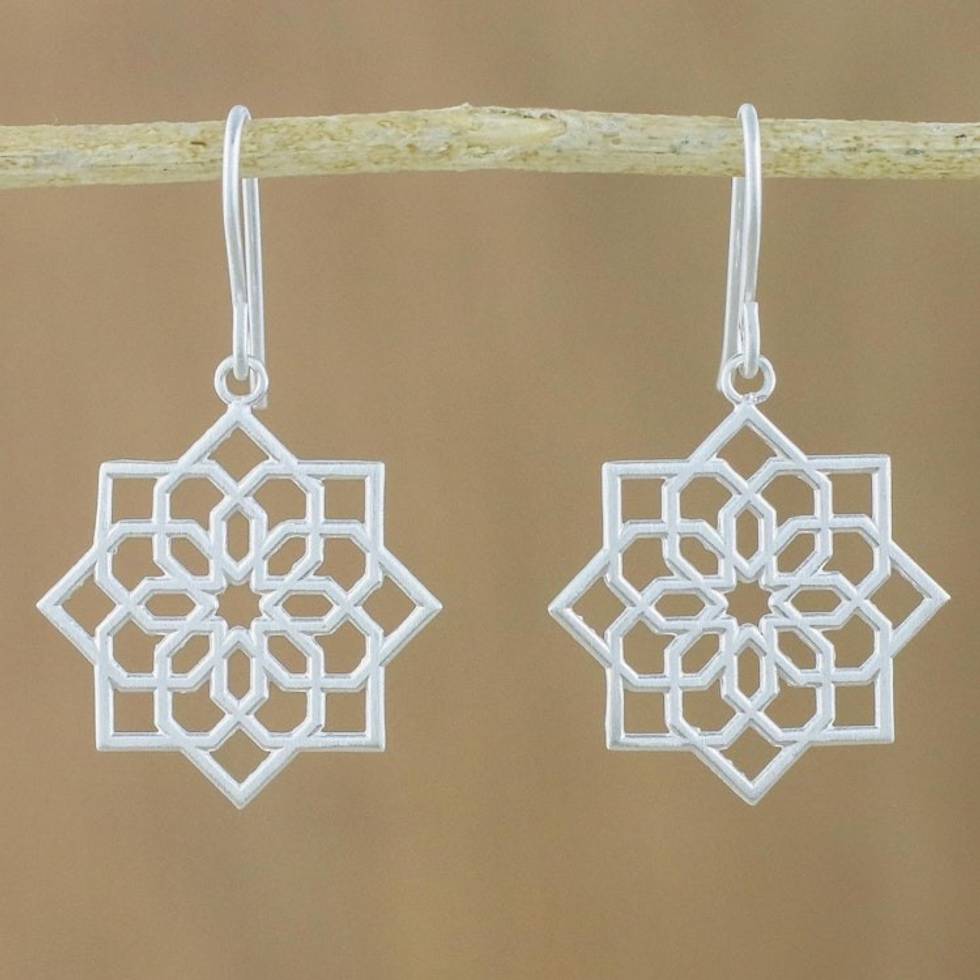 Hexagonal Mandala Sterling Silver Dangle Earrings 'Hexagonal Mandala' Item ID: 2671798905