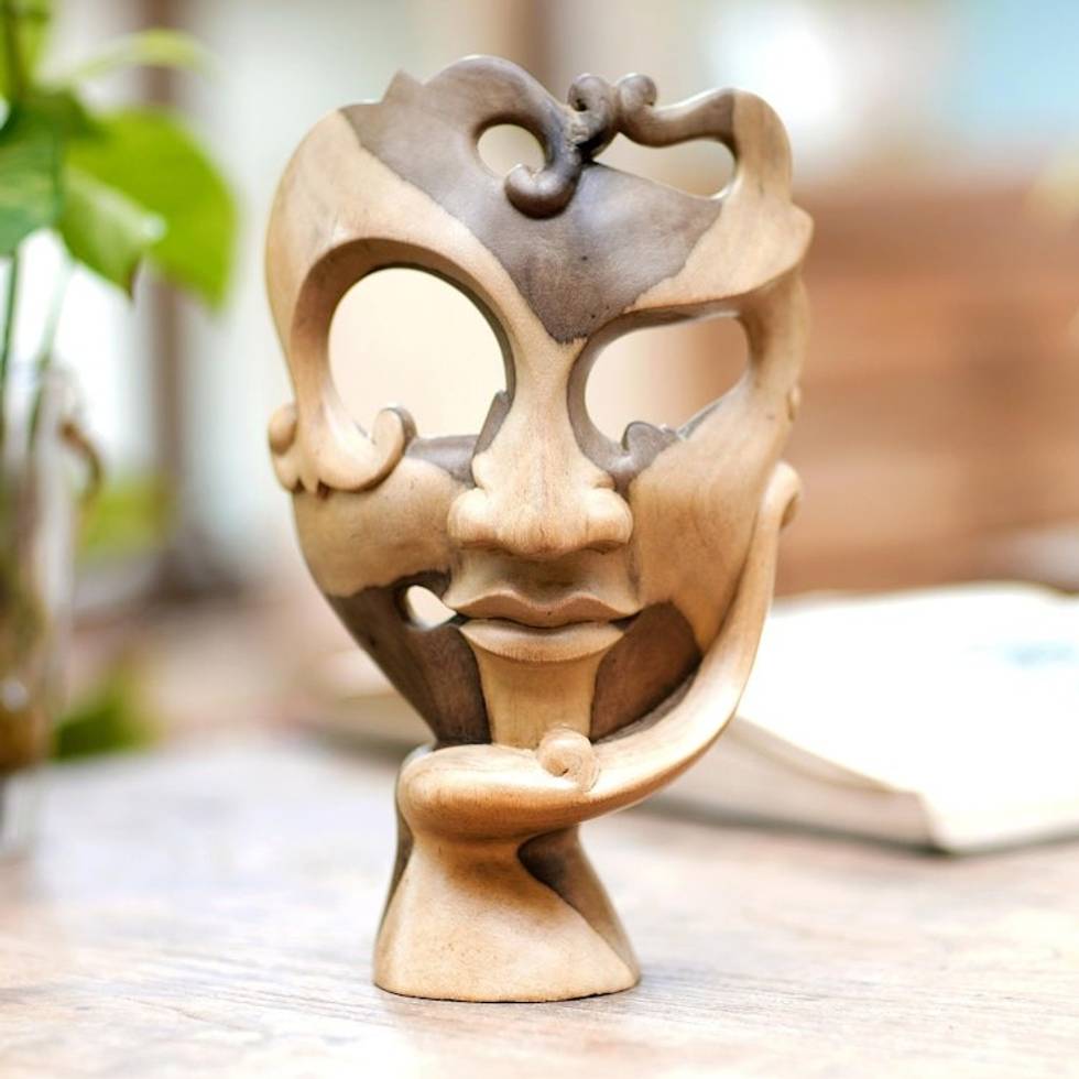 Hibiscus Wood Mask Hand Carved in Indonesia 'Awaiting Him' Item ID: 2671699295