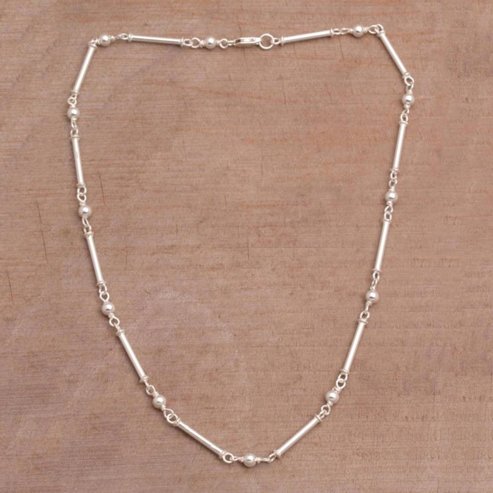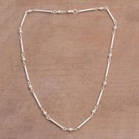 High-Polish 925 Sterling Silver Link Necklace from Bali 'Luminous Rods' Item ID: 2669921030