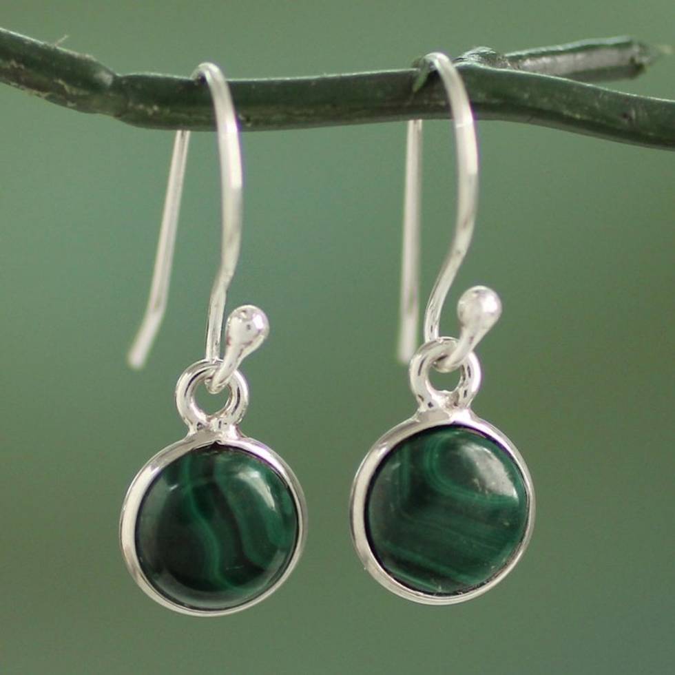High Polish Sterling Silver and Malachite Dangle Earrings 'Malachite Spheres' Item ID: 2671793267