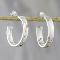 High-Polish Sterling Silver Half-Hoop Earrings from Thailand 'Shiny Curves' Item ID: 2669926331