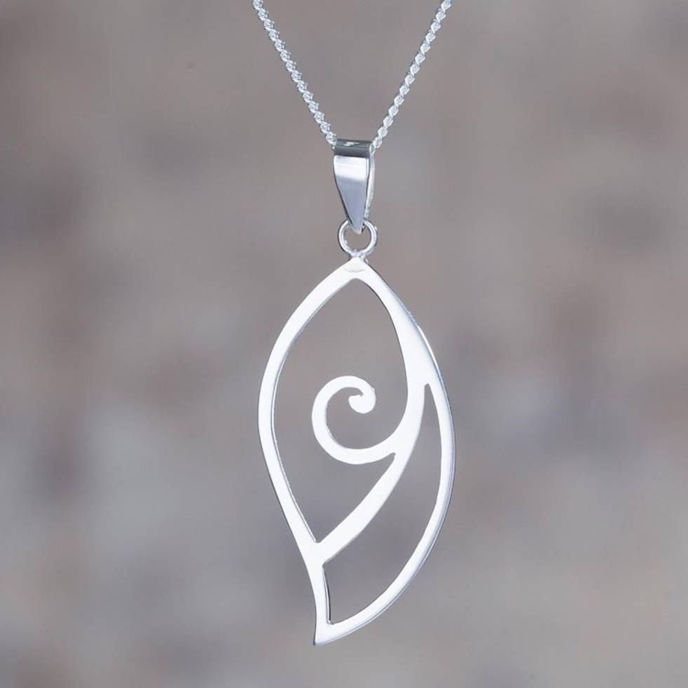 High-Polish Sterling Silver Leaf Pendant Necklace from Peru 'Fantastic Leaf' Item ID: 2669919366