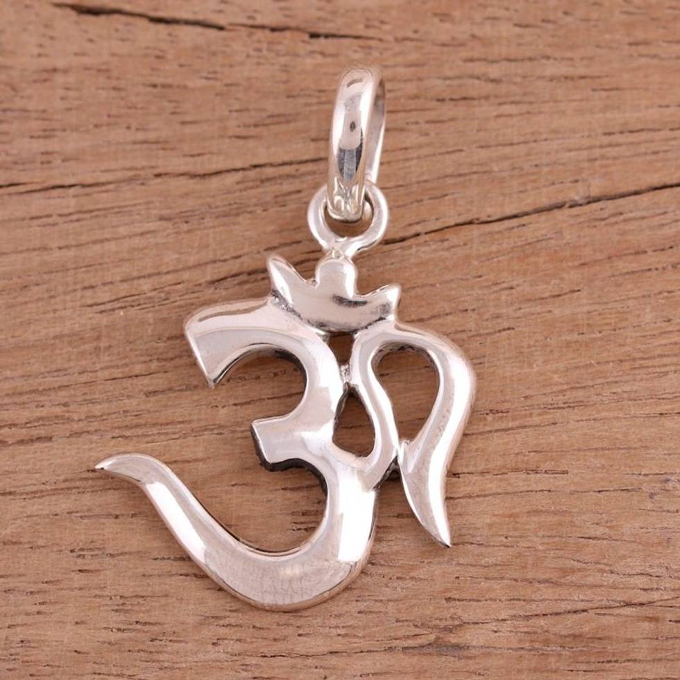 High-Polish Sterling Silver Om Pendant from India 'Majestic Om' Item ID: 2669924333