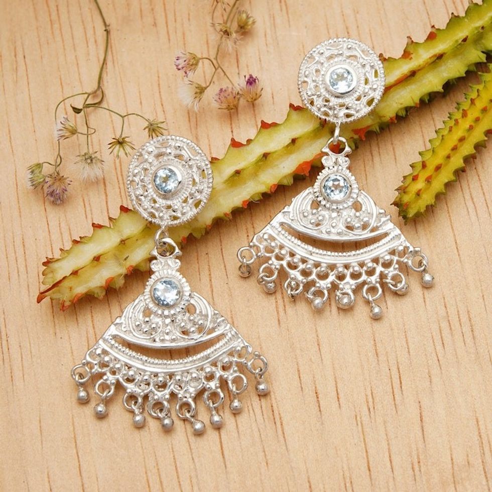 High-Polished 1-Carat Faceted Blue Topaz Chandelier Earrings 'Heaven Dame' Item ID: 2671765646
