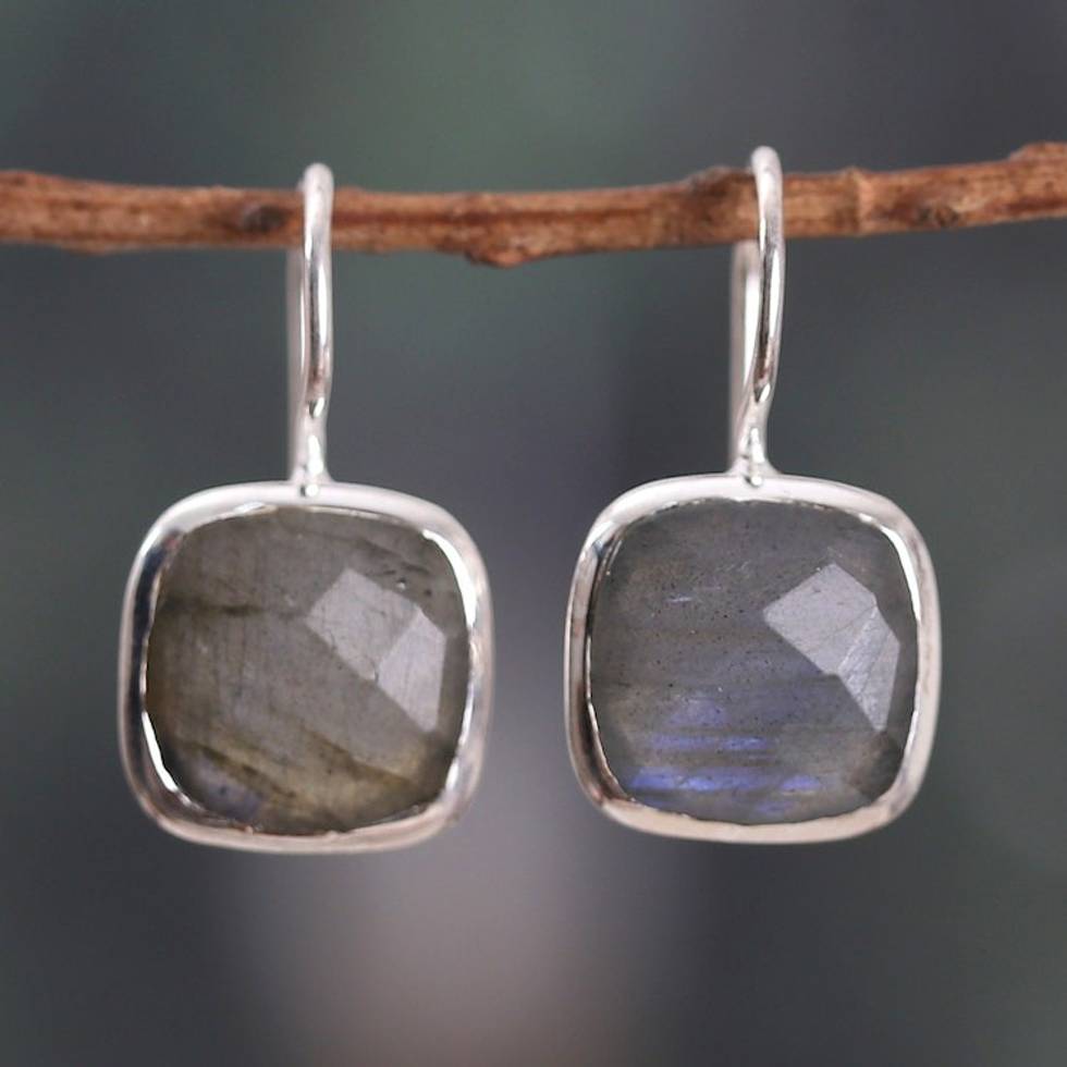 High-Polished 12-Carat Natural Labradorite Drop Earrings 'New Essence' Item ID: 2671625276