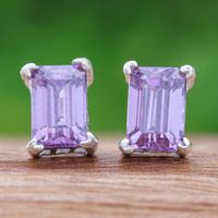 High-Polished Baguette-Shaped Amethyst Stud Earrings 'Purple Baroness' Item ID: 2669928644