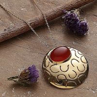 High-Polished Brass and Red Onyx Pendant Necklace 'Glowing Flame' Item ID: 2671781467